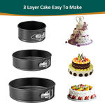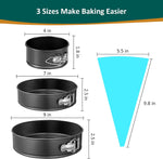 3Pcs Springform Cake Pan Set - 4 7 9 Inch Steel Nonstick Leakproof Cheesecake Pans round Cake Molds Removable Bottom Bakeware for Smash Cake, Pizzas and Quiches with 2 Pastry Bags 6 Icing Tips