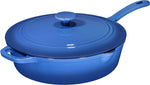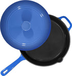 5Qt Blue Enameled Cast Iron Skillets with Lid and Handle, Non Stick Cookware and Grill for Casserole Dish, 5 Quarts Cast Iron Skillets Grill Frying Pan,Saute Pan,Bakeware