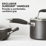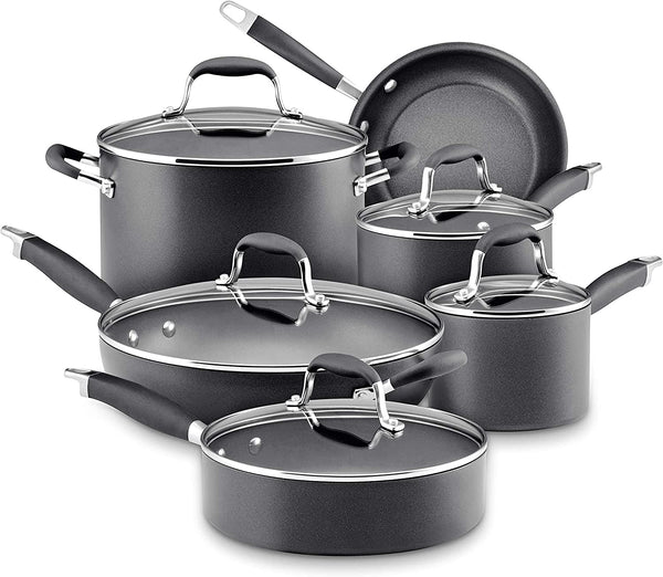 DURABLE CONSTRUCTION: Hard-anodized construction provides efficient, even heat distribution PREMIUM NONSTICK: High-quality, metal utensil safe nonstick delivers a superior food release and effortless cleanup COMFORT AND CONFIDENCE: The cookware set’s...