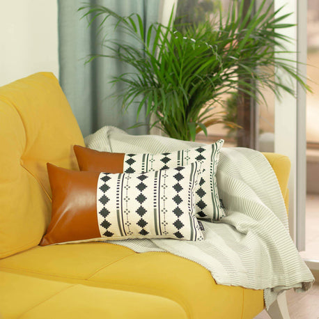 Bohemian Vegan Faux Leather Throw Pillow Set