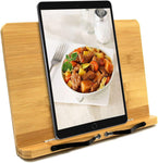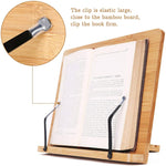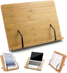 Book Holder, Book Stand Bamboo Cookbook Stand with 5 Adjustable Height Hands Free Book Holder Stand for Reading & Desk & Display (Simple Style)