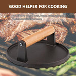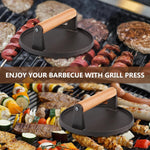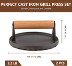 Cast Iron Bacon Press Set of 2, Heavy Duty 7'' round Grill Press Steak Weight with Wooden Handle for Meat, Burger, Panini, Perfect for Grilling and Griddle Cooking, Ideal Gift for Chefs Cooks
