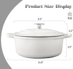 Cast Iron Dutch Ovens Enameled Covered with Dual Handle, 2.8 Quart, White