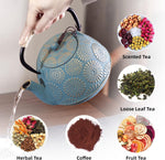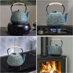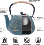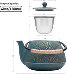 Cast Iron Teapot, Large Capacity 40Oz Tea Kettle with Infuser for Stove Top, Sakura Design Japanese Tea Pot for Loose Leaf Coated with Enameled Interior, 1200Ml Green