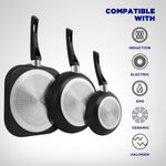 Ceramic Cookware | 16-Piece Nonstick Cookware Set with Induction Base, Softgrip Handles & Clear Glass Lids | Compatible with Induction, Ceramic, Gas, Electric & Halogen Cooktops | Black