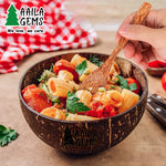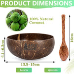 Coconut Bowl and Wooden Spoon Set- Vegan Organic Salad Soup Smoothie Bowl for Gift - Polished Buddha Bowl for Kitchen Utensils, Dark Brown, 5×2.55 (Coco-2)