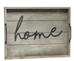 Freshen up your home with this rustic gray wooden tray! Accented with black metal handles and black text this tray is on trend to give your home that cozy farmhouse...