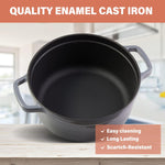 Enamel Cast Iron Covered Dutch Oven Pot with Lid for Bread Baking Use on Gas Electric Oven 3 Quart(Grey, 2-3 People)