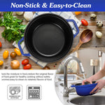Enameled Cast Iron Dutch Oven Bread Baking Pot with Lid (2QT, Blue)