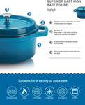 Enameled Cast Iron Dutch Oven Non-Stick Bread Baking Pot with Lid Suitable for Bread Baking Use on Gas Electric Oven 6 Quart, Peacock Blue