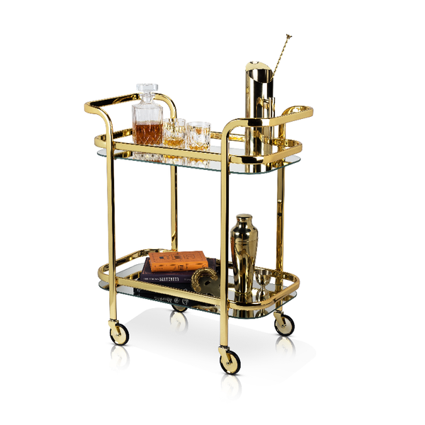Beautiful Barware Deserves To Be Displayed With Decorous Style Constructed From Stainless Steel With A Veneer Of Polished Gold. The Belmont Bar Cart Succeeds In Doing Just That Rubber-Lined Wheels...