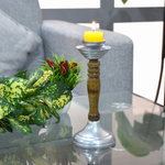 Candle holders are a must have D?cor item in your home if someone likes to alter the lights This is handmade and traditional in design This Candle holder is made up of Iron and wood Available in silver Country of Origin:- India
