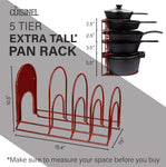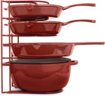 Heavy Duty Pots and Pans Organizer - Extra Large 5 Tier Pan Rack for Cast Iron Skillets, Griddles - Durable Construction - Space Saving Kitchen Storage - No Assembly Required - Red 15.4"-Inch
