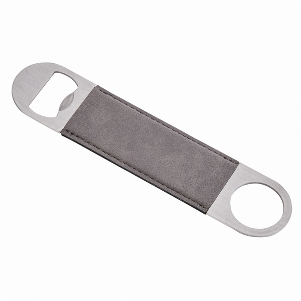 Enjoy opening your favorite beverages with our grey colored leatherette and stainless steel bottle opener The item measures 7 x 15 with the grey colored leatherette area measuring 375 x...