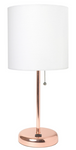 LimeLights Rose Gold Stick Lamp with USB charging port and Fabric Shade