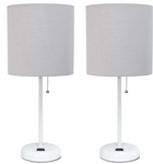 LimeLights Stick Lamp with Charging Outlet and Fabric Shade 2 Pack Set