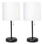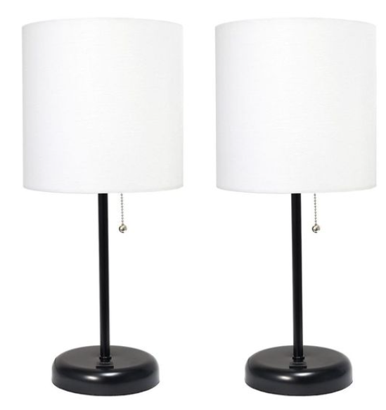LimeLights Stick Lamp with USB charging port and Fabric Shade 2 Pack Set