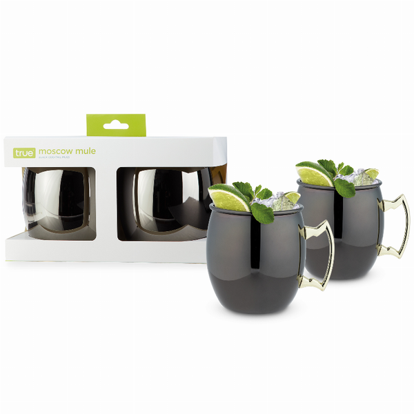 Double Or Nothing: This Handsome Pair Offers A Refreshing Take On The Moscow Mule Mug Restaurant-Grade Stainless Steel With A Polished Black Exterior. Completed With A Golden-Hued Zig-Zag Handle Come...