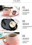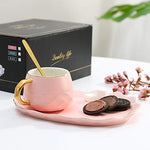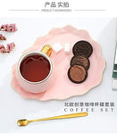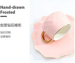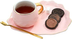 Nordic Coffee Cup Spoon and Tray Set,Diamond-Shaped Ceramic Tea Cup with Spoon,Breakfast Cup and Cutlery Set,Mug,Cup,Suitable for Hot and Cold Drinks of Coffee,Tea,Juice,Milk,(3Piece Set250Ml) (2)