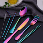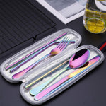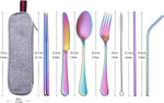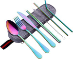Portable Travel Reusable Lunch Utensils Set with Case Chopsticks for Adults, Portable Reusable Comping Silverware Cutlery Set Metal Travel Eco Friendly with Case Straw Chopsticks for Lunch Box,Rainbow
