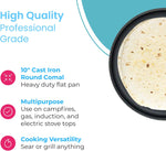 Pre-Seasoned 10" Cast Iron round Comal - Heavy Duty & Pre-Seasoned with Vegetable Oil - Great for Tortillas, Pancakes Chapati, Omelets, Crepes - Durable Camping Comal Skillet (Set of 1)