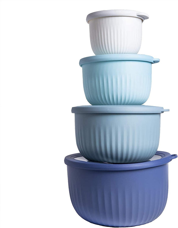 Prep Bowls with Lids- Deep Mixing Bowls Nesting Plastic Small Mixing Bowl Set with Lids (Blue Ombre)