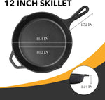 Professional Chef Grade Cast Iron Skillets 12 Inch Pre-Seasoned Cast Iron Pan Non- Stick for Home, Camping Indoor and Outdoor Cooking, Frying Pan, Searing and Baking on Stove Top
