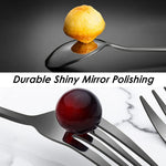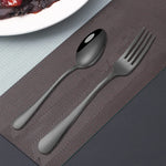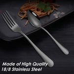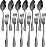 Set of 12, Black Plated Stainless Steel Dinner Forks and Spoons, Heavy-Duty Forks (8 Inch) and Spoons (7 Inch) Cutlery Set- Black