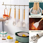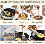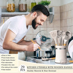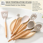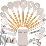 Silicone Cooking Utensil Set, 38 Pcs Silicone Cooking Kitchen Utensils Set with Wooden Handle, Non-Stick Heat Resistant - Best Kitchen Cookware Set- Khaki(Bpa Free, Non Toxic)