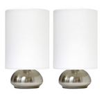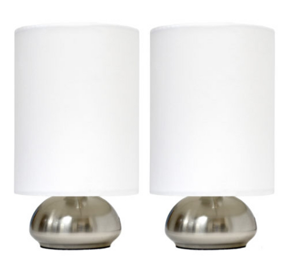 Simple Designs Gemini 2 Pack Mini Touch Lamp with Brushed Nickel Base and Fabric Shades