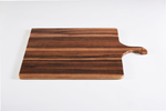 Acacia wood cutting/ charcuterie board featuring a beautifully shaped handle Hole in handle for hanging and storing purposes Handle makes it easy to go from kitchen to table for serving...