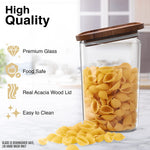 Square Glass Jars with Wood Lids Set of (2) 64 Fl Oz Airtight and Stackable Storage Containers for Kitchen Pantry or Bathroom BPA Free and Recyclable Canister for Food Cookies Coffee Pasta Sugar