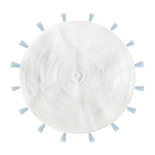 Our round tassel rope rug is handmade from natural. non-toxic cotton rope The perfect focal point for your little ones nursery. playroom - or. any other room of your home...
