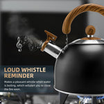 Tea Kettle Stovetop - Whistling Teapot for Stovetop - Stainless Steel Tea Pots for Stove Top, 3-Ply Composite Base, Fast Boiling Teakettle Work for All Heat Sources (Black 2.6QT)