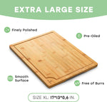 Turkey Cutting Board – 17 X 13 X 0.6 Inch Extra Large Bamboo Carving Board – All Natural Wood Board for Kitchen – Eco-Friendly and Durable – Easy to Wash