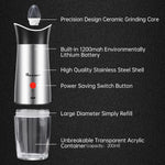 - USB Rechargeable Pepper Grinder set: Our electric pepper grinder is powered by a 1200mAh rechargeable built-in battery, which supports 200 times grinding after full charging by USB cable. The automatic salt and pepper grinder set will free your hands completely. With the sensor, you can tilt the pepper mill grinder with one-hand operation after pressing ON/OFF, and you will get fresh spices immediately.