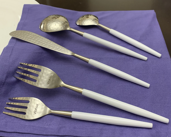 Vibhsa White Flatware Set 5 Piece Place Setting (Hammered Mouth)
