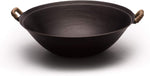 . Handmade cast iron wok using Chinese traditional old casting technique. 1600 temperature liquid iron in earth mould to forge a wok. Thin but durable. . Simple: No coating, no painting, nothing but iron. It is completely safe and healthy. . Versatile: This wok can be used for cooking, stewing, boiling and stir frying. . Compatible: ultra-durable surface make the wok compatible with metal, wood and silicone utensils and it is suitable for all kinds of foods. . Well designed: thick bottom for better heat retention, thin brims for heat to conduct faster.